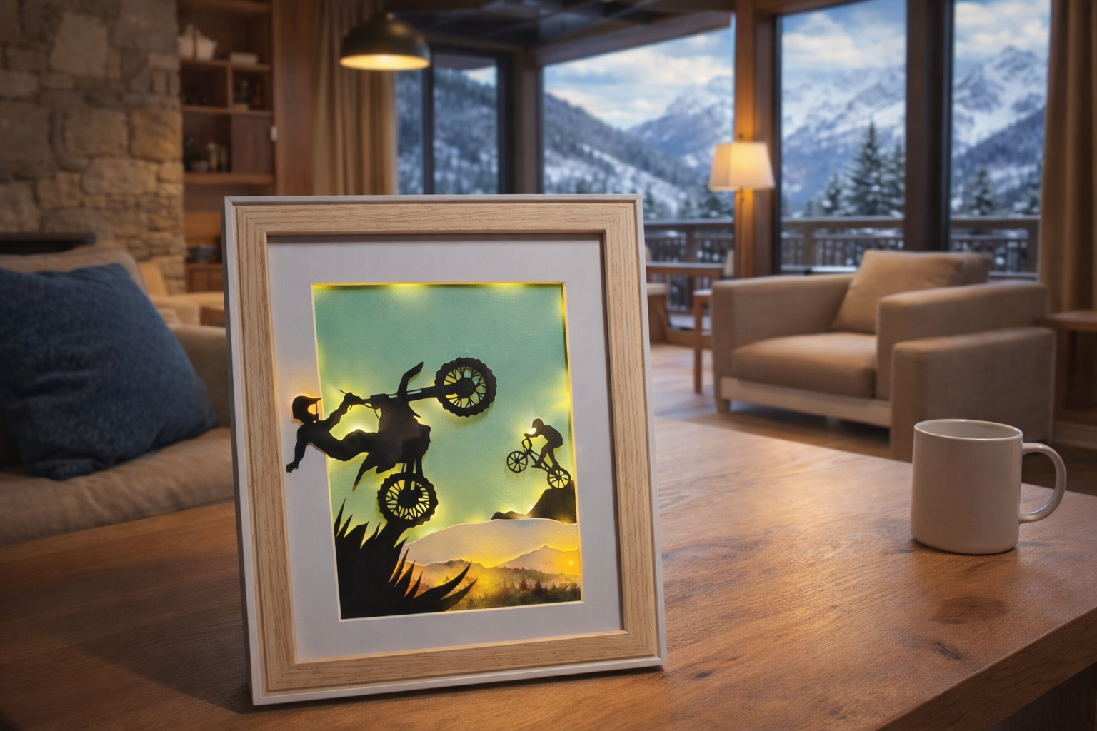Mes cadres lumineux sont bien plus que de simples objets décoratifs. Ils sont une source d'émotion, créant une ambiance unique dans votre intérieur. Chaque modèle est dessiné à main levée et découpé au scalpel, ce qui lui confère un caractère authentique et exclusif. La lumière LED, soigneusement intégrée, apporte une sensation de chaleur et de bien-être à la nuit tombée. Le cadre pourra être utilisé comme élément de décoration le jour et veilleuse temporaire le soir.